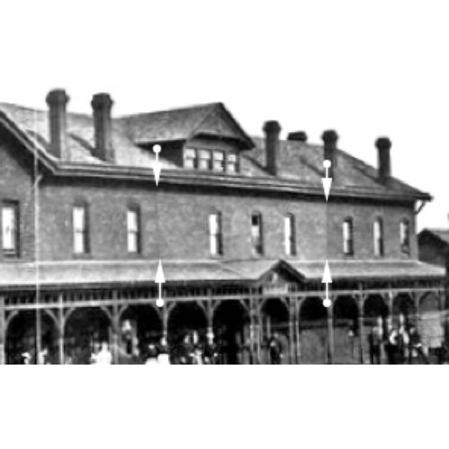 Anyway, having painted the scenario, it should now be easy to envisage that prior to the kitchen addition it would not have been difficult to have a doorway into the North wall of the Depot. Jim, if we calculate, we will find that the doorway altered to a window in the North wall of the depot, that is the one with a different architecture to the remainder of the building would be practically directly below the window at the end of the hallway upstairs.I have long said that the depot was built against the hotel and that it was moved before the earliest known 1883 photo. I can go back there and explain again, and that the roof over the office was changed in that moving process.