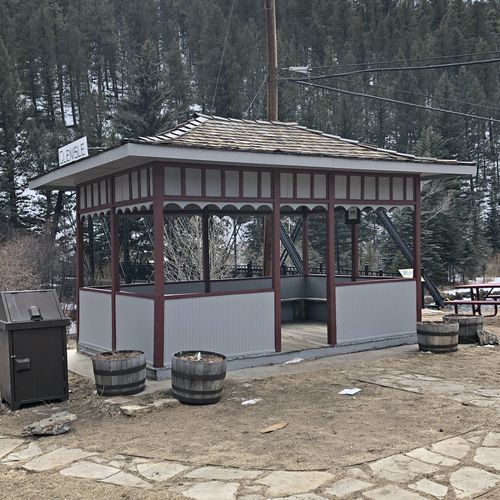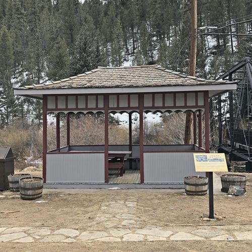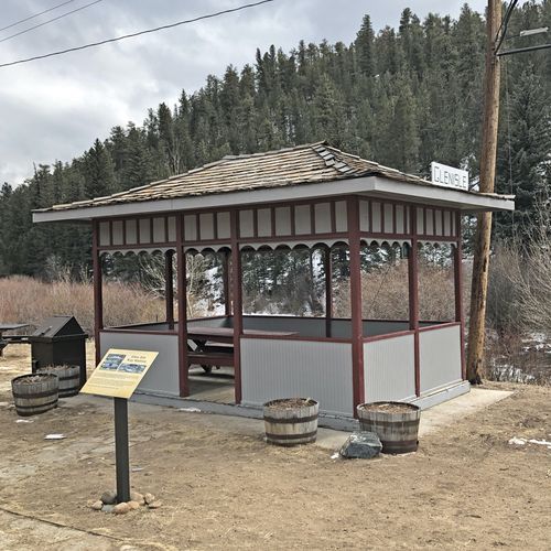 This Way Station was originally located near the Glen-Isle Resort, next to the railroad tracks. The present highway follows the original railroad tracks. Railroad passengers going to and from Glen-Isle would often use this structure as a waiting area to catch the next train.