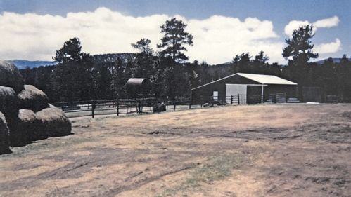 The Deer Valley Park Association Ranch is now located just after the cemetery on the right side of Highway 285 as you travel toward Denver. You can see that the landscape contains the same types of buildings, such as barns and sheds. However, these structures are constructed of different materials, such as metal.