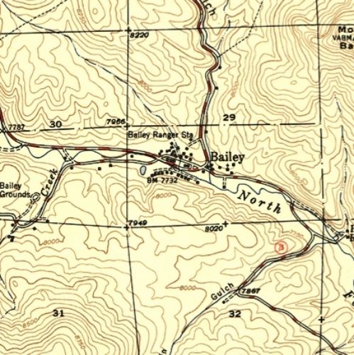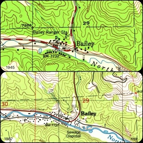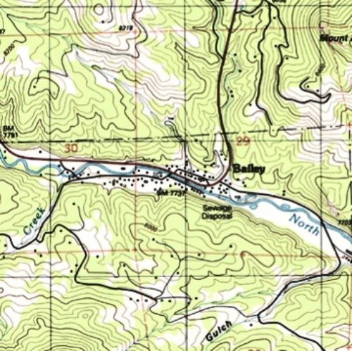 The icons are linked to full size maps of the Bailey area. They are of various scales and are in either JPEG or PDF format. Some files are quire large so a little patience may be necessary for some to load. In additon to formal maps, there are original plats of the Bailey area.